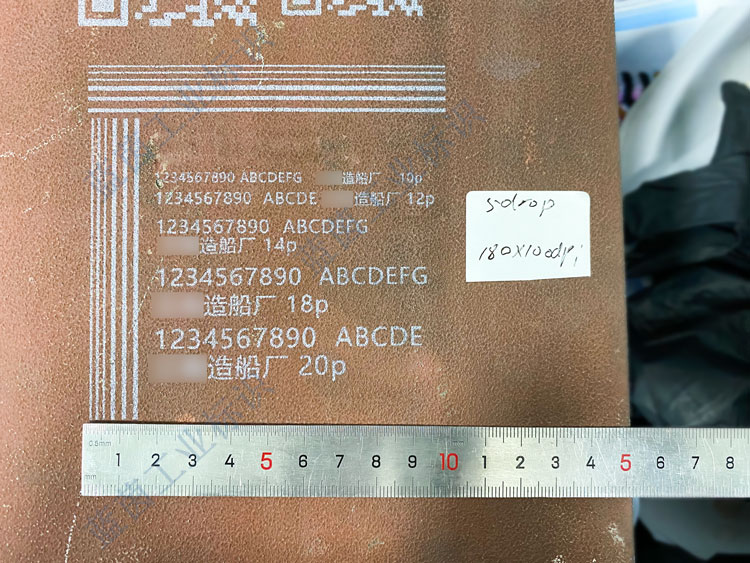 造船廠鋼板鍍漆表面30mm遠距離二維碼UV噴印效果