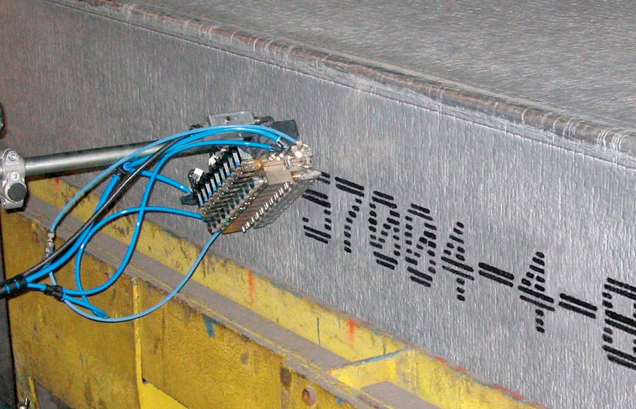 針對鋼卷、鋼管、鋼板、鋁板、型材等金屬界面特性,藍茵開發專業金屬表面噴碼方案。攻克油性基面滲透、銹蝕表面附著力、高溫熱脹冷縮三大技術瓶頸,在各類金屬表面實現零脫落打標。完美適配鋼板噴碼、鋁板打碼、鋼管噴碼打標等的需求,提供永久清晰的追溯標識系統,徹底解決金屬行業標識脫落難題。