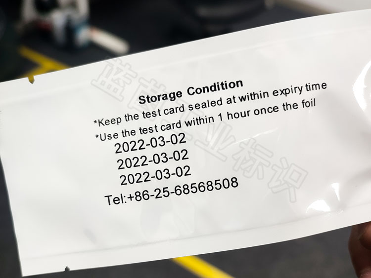 在光滑的鋁箔袋上面噴印,需要高附著、耐擦拭的墨水,UV墨水就可以很好的做到這點,UV紫外固化技術,讓墨水瞬間變干,從而形成高附著、清晰、耐擦拭的標識。以下是某客戶在藍茵打樣的鋁箔袋UV噴碼機高附著高清噴印效果圖。藍茵UV噴碼機可高速穩定生產,每小時產量可達2W+片。
