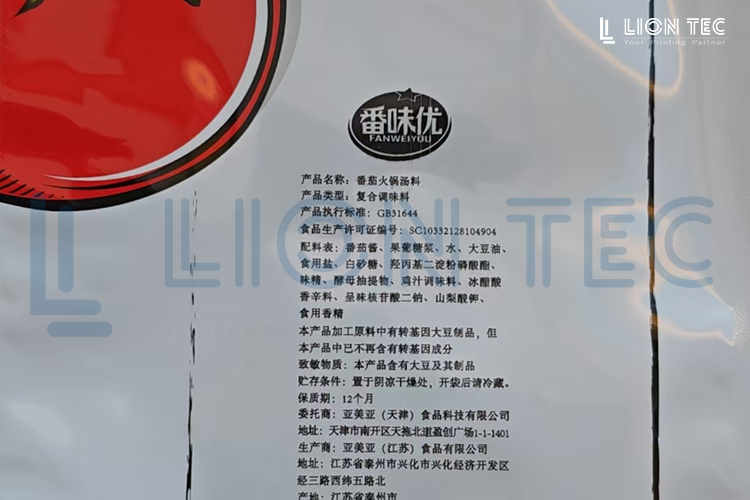 藍茵UV噴碼機可實現在食品塑料pe膜包裝袋上噴印營養成份表、logo、產品信息、廠家信息,等寬幅大幅面內容,實現高清晰、高附著噴印效果
