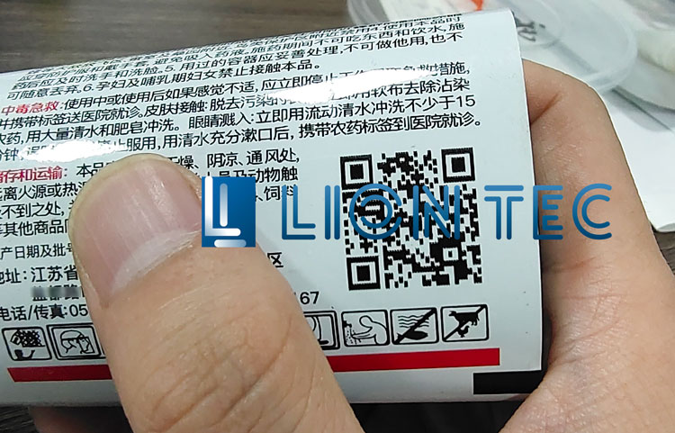 UV噴碼機的壓電式噴墨與LED光固化技術很適合在這種?特殊的薄膜材料上進行高附著、高清晰的打印,以上是我們為客戶送樣的效果圖。小尺寸的二維碼在UV噴碼機的打印下同樣可以清晰、易識別。