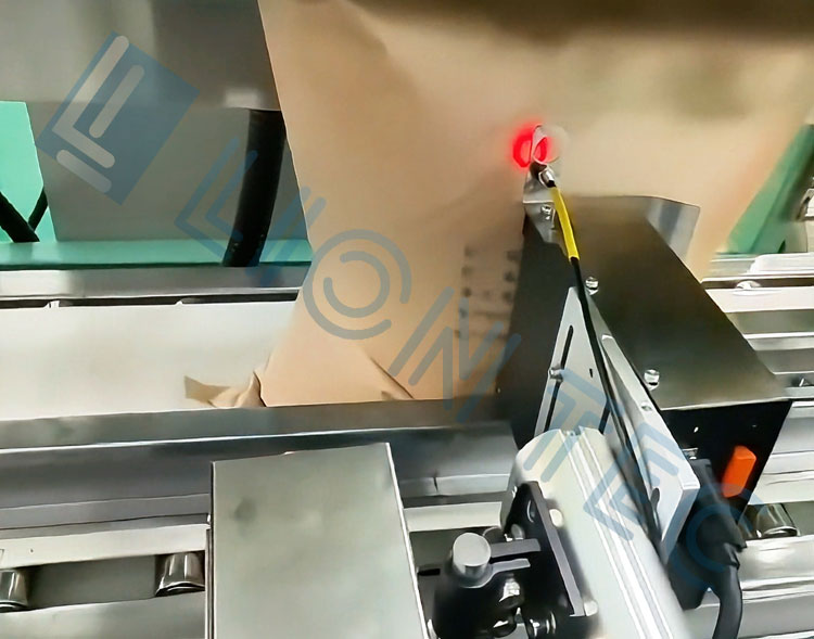 全自動UV噴碼機在牛皮紙上噴印多行產品信息、批號、生產日期